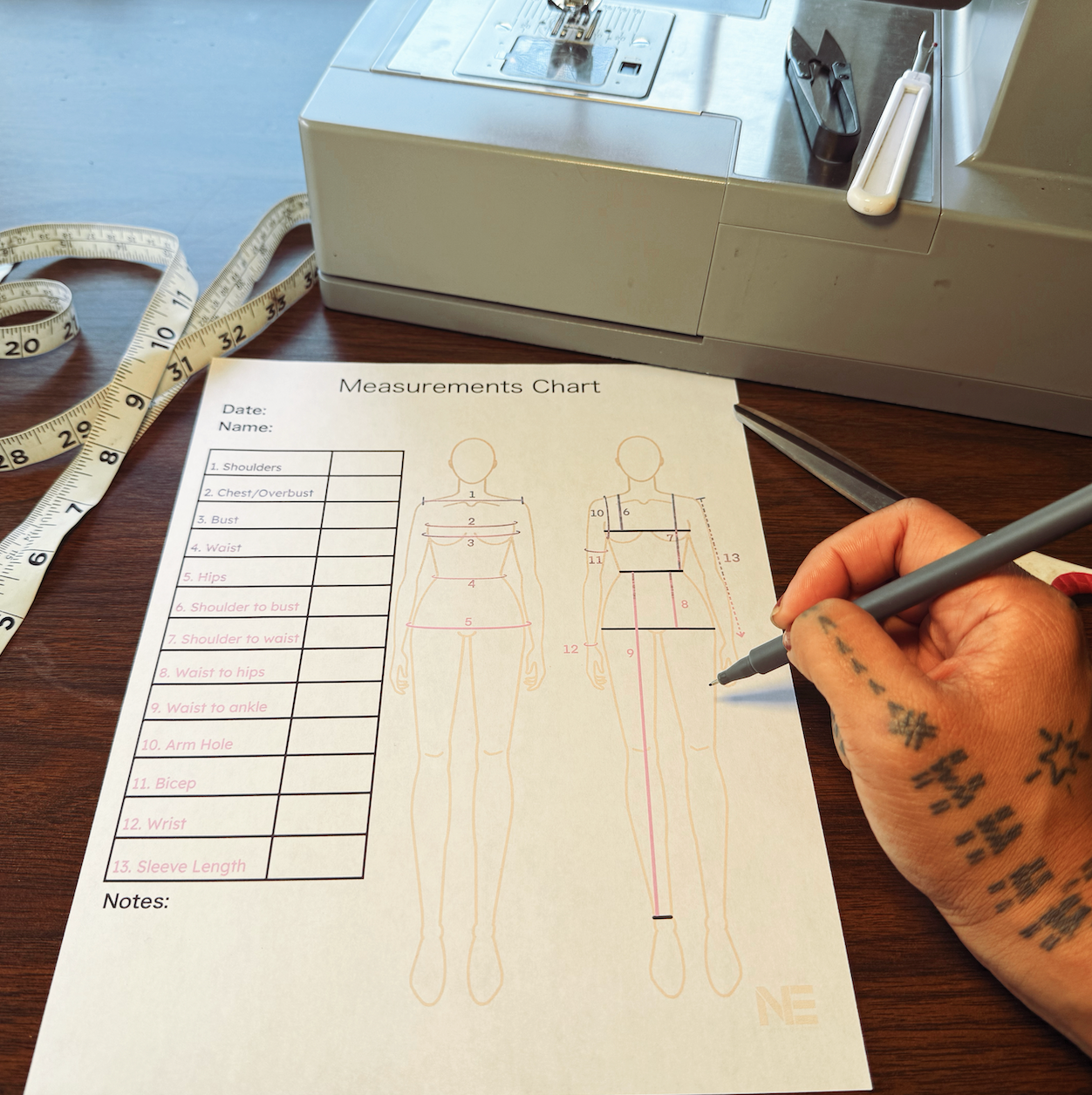 - Printable chart with all 13 measurements